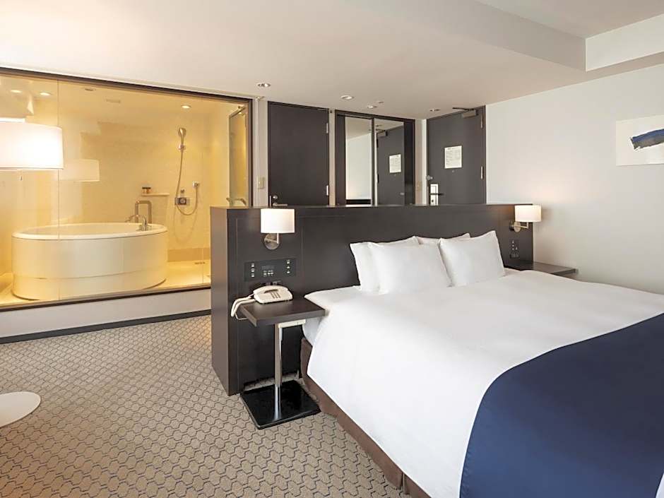 This spacious room is air-conditioned and equipped with a Simmons bed, a TV and a refrigerator. A work desk, slippers and toiletries are provided.