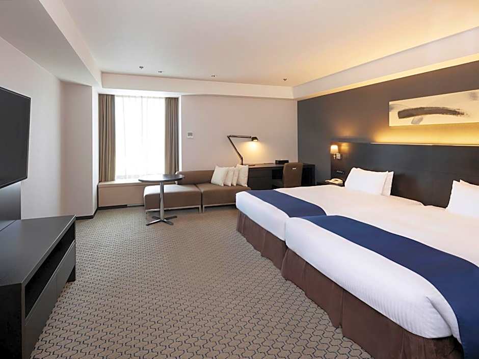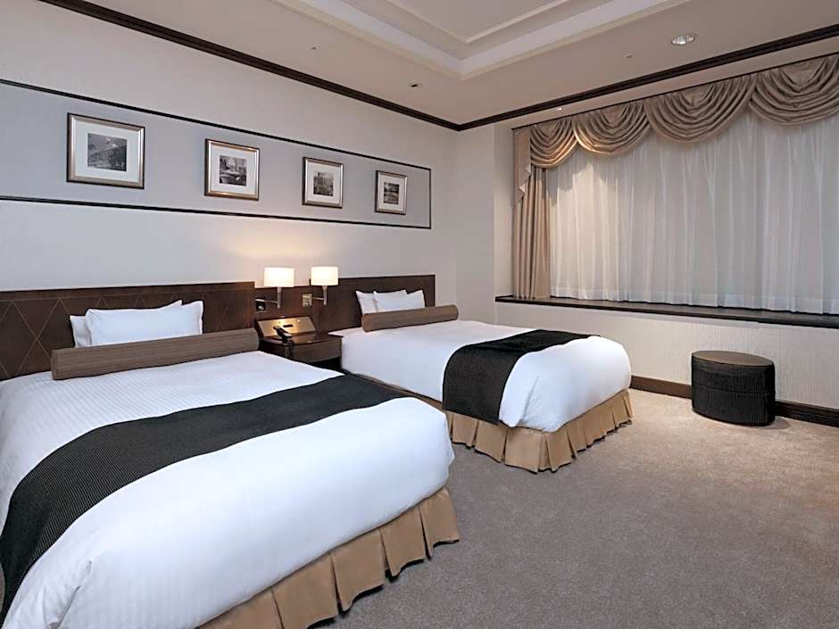 This room features Western-style beds and a tatami (woven-straw) seating area. Room is air-conditioned and equipped with a TV and a refrigerator. A work desk, slippers and toiletries are provided.